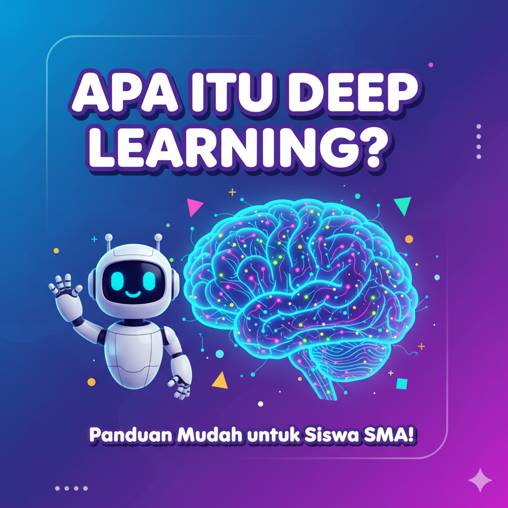 Deep Learning (dalam Bahasa Indonesia: Pembelajaran Mendalam) adalah bagian dari Kecerdasan Buatan (Artificial Intelligence/AI) yang meniru cara kerja otak manusia untuk belajar dari data. Teknologi ini sedang mengubah dunia — dari smartphone sampai mobil tanpa sopir!