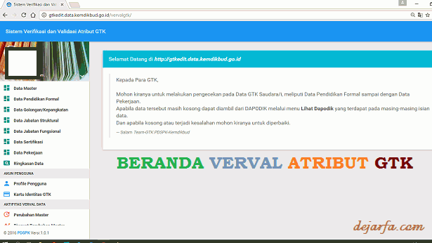 Dengan diterimanya email tersebut maka secara resmi terdaftar dan memiliki akun verval atribut gtk pada sistem gtkedit.data.kemdikbud.